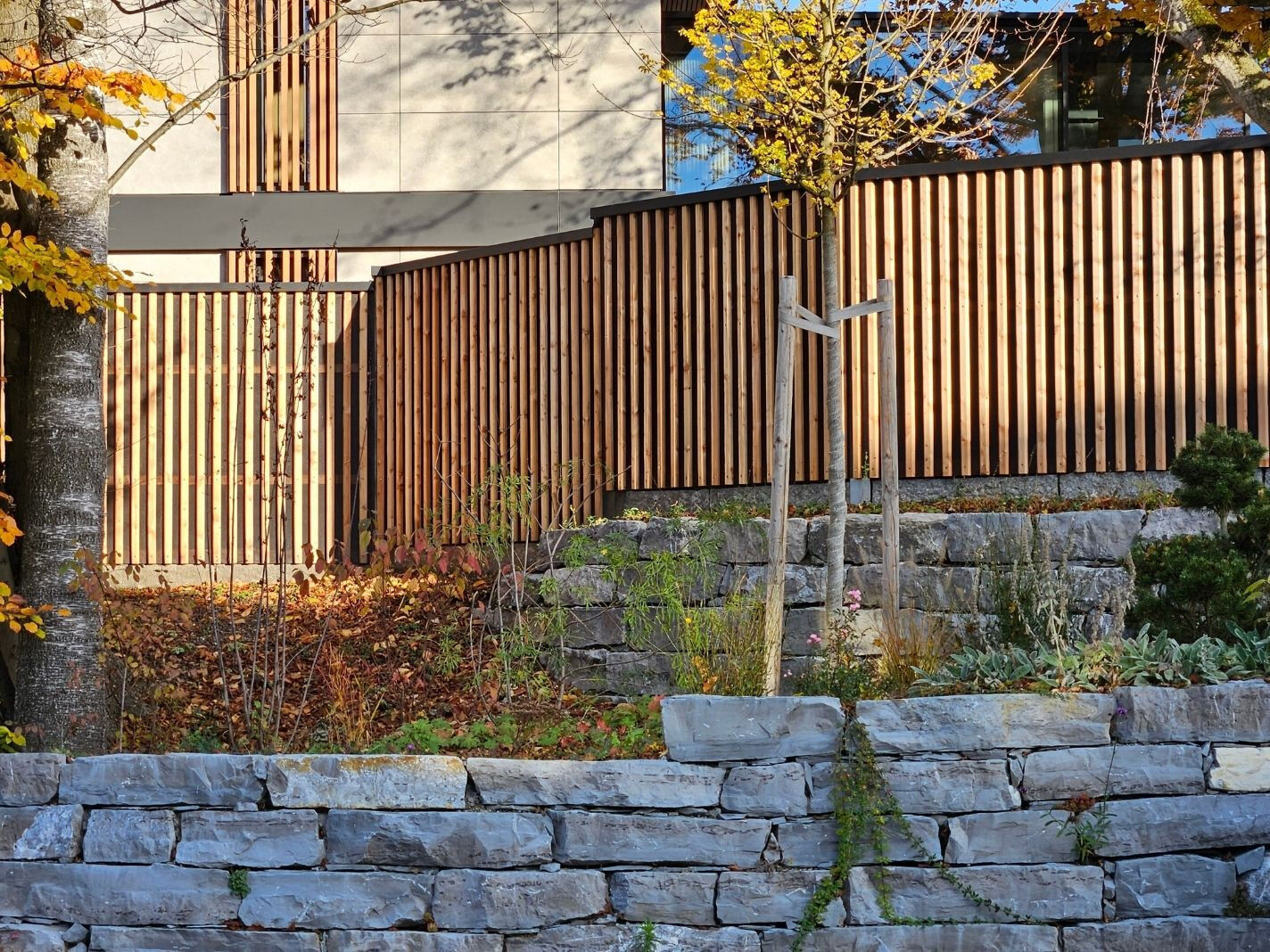Entscheidend für die Wirksamkeit einer Lärmschutzwand ist vor allem ihre Höhe. Als Faustregel gilt: Vom Grundstück aus sollte die Oberkante der Fahrzeuge nicht mehr sichtbar sein. Neben der Höhe spielt auch das Eigengewicht und die fachgerechte Verarbeitung der Wand eine wichtige Rolle. Idealerweise werden Lärmschutzwände möglichst nah an der Schallquelle errichtet. So lassen sich Dämmwerte von etwa 20 bis 25 dB(A) erzielen. Zum Vergleich: Bereits eine Reduzierung um 10 bis 15 dB(A) wird vom menschlichen Ohr als Halbierung der Lautstärke wahrgenommen. Hochabsorbierende Lärmschutzwände reduzieren zusätzlich Schallreflexionen und schützen damit auch gegenüberliegende Gebäude.
