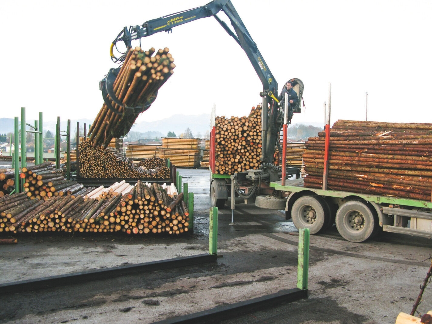 Holzanlieferung von Fichtenstangen aus Oberbayern
