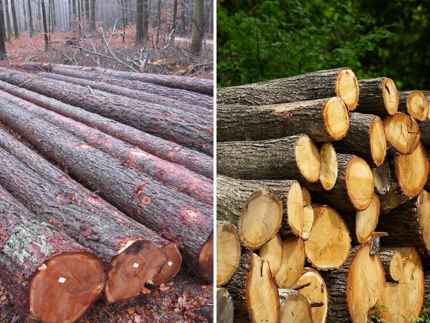 Lärchen- und Eichenstämme aus nachhaltiger Forstwirtschaft