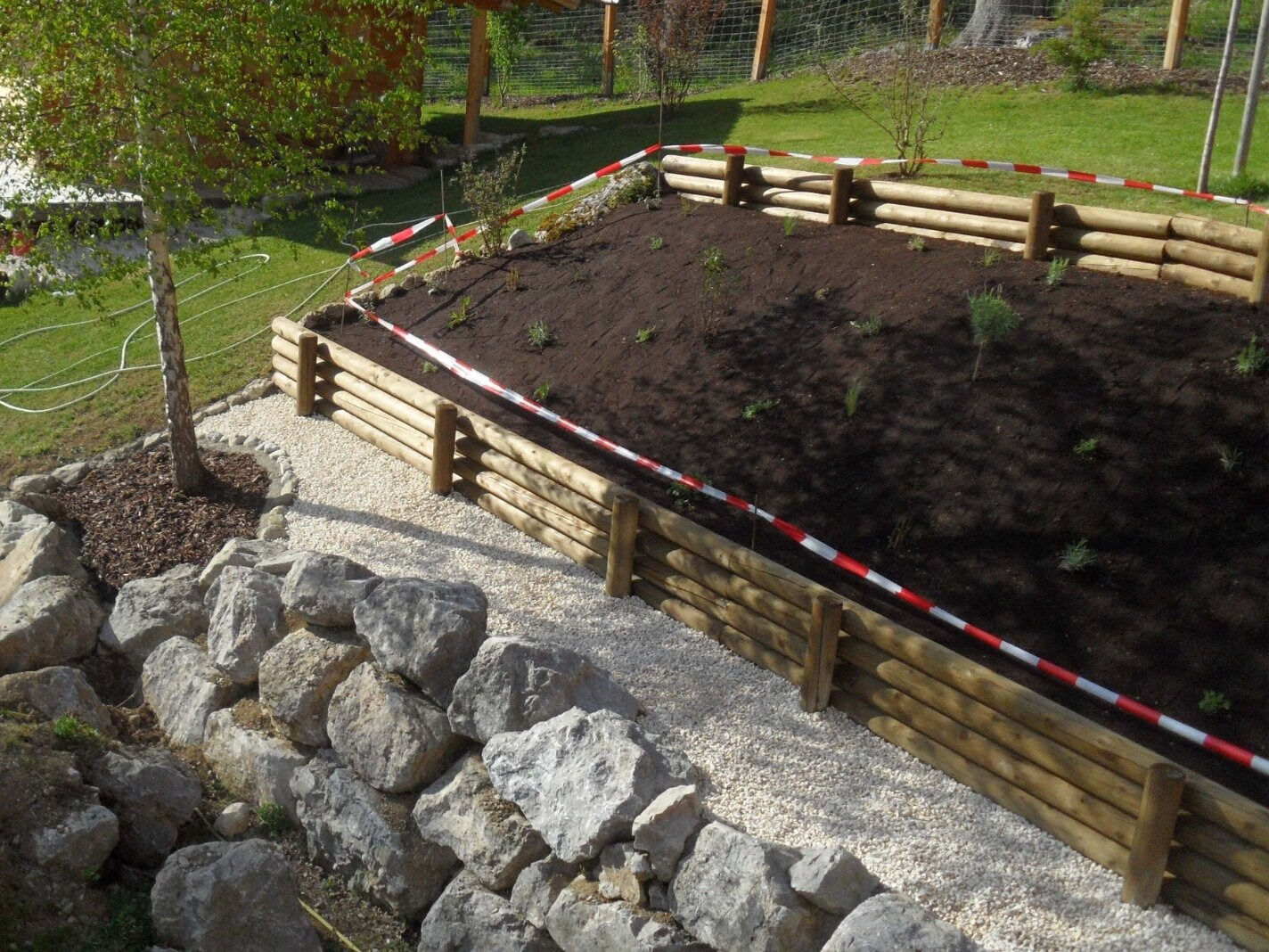 Palisaden | RuNDHÖLZER UNGLEICH GESCHÄLT | HALBHÖLZER